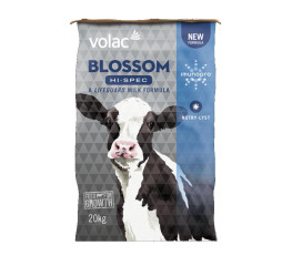 Latte in polvere Volac Blossom Hi-Spec, sostitutivo del latte ad alto tenore proteico per vitelli, promuove una crescita ottimale e sostiene gravidanze e lattazioni.