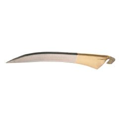 Un falcetto a falce di 34 cm ideale per falciare il trifoglio, le erbe o l'erba. Fornito con un manico in legno, è realizzato artigianalmente, temprato …continua