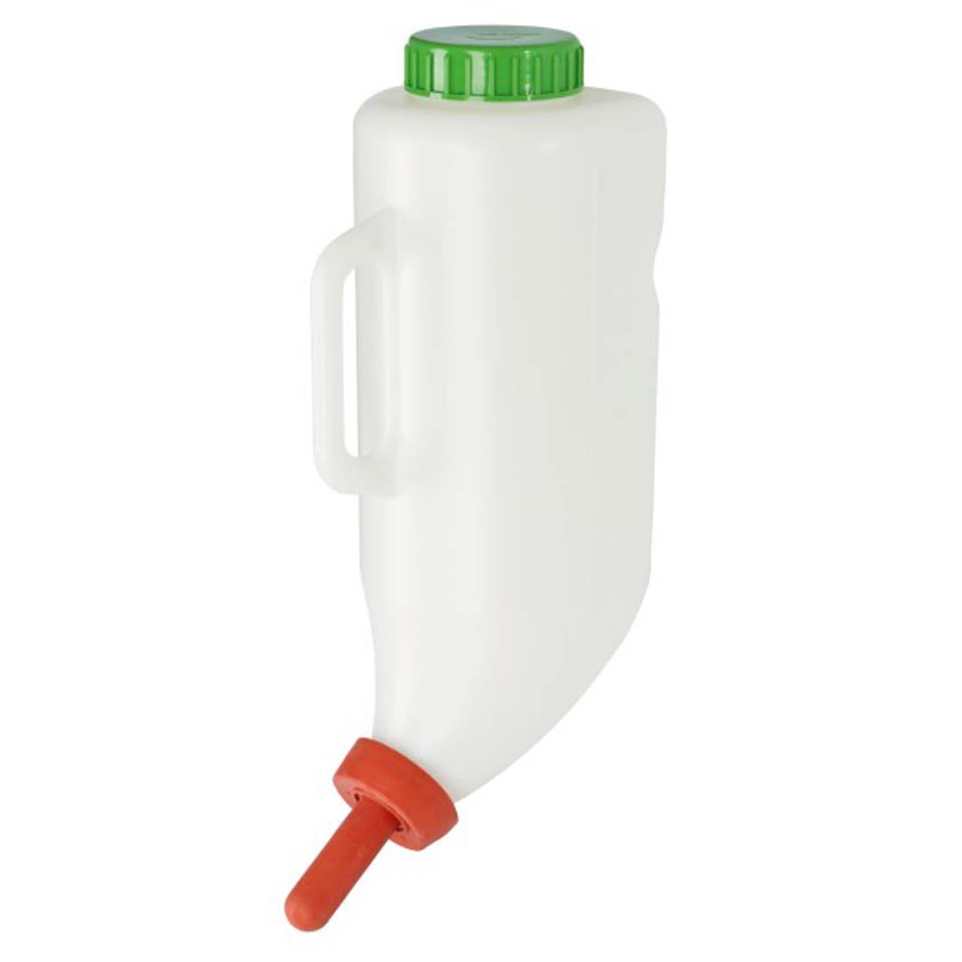 Dotato di tettarella per il latte 1432, può essere utilizzato anche con la sonda di somministrazione (articolo n. 14682, 14683) per dosare il latte e per terapie liquide ed elettrolitiche per i vitelli. Ampia apertura per il riempimento con tappo a vite. Impugnatura esterna senza cavità che facilita la pulizia e previene la formazione di depositi.