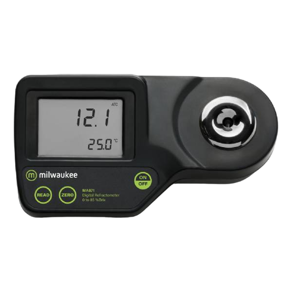Il Rifrattometro Digitale MA871 per la misura del saccarosio, è uno strumento ottico che utilizza la misura dell’indice di rifrazione per determinare il contenuto zuccherino di soluzioni acquose.